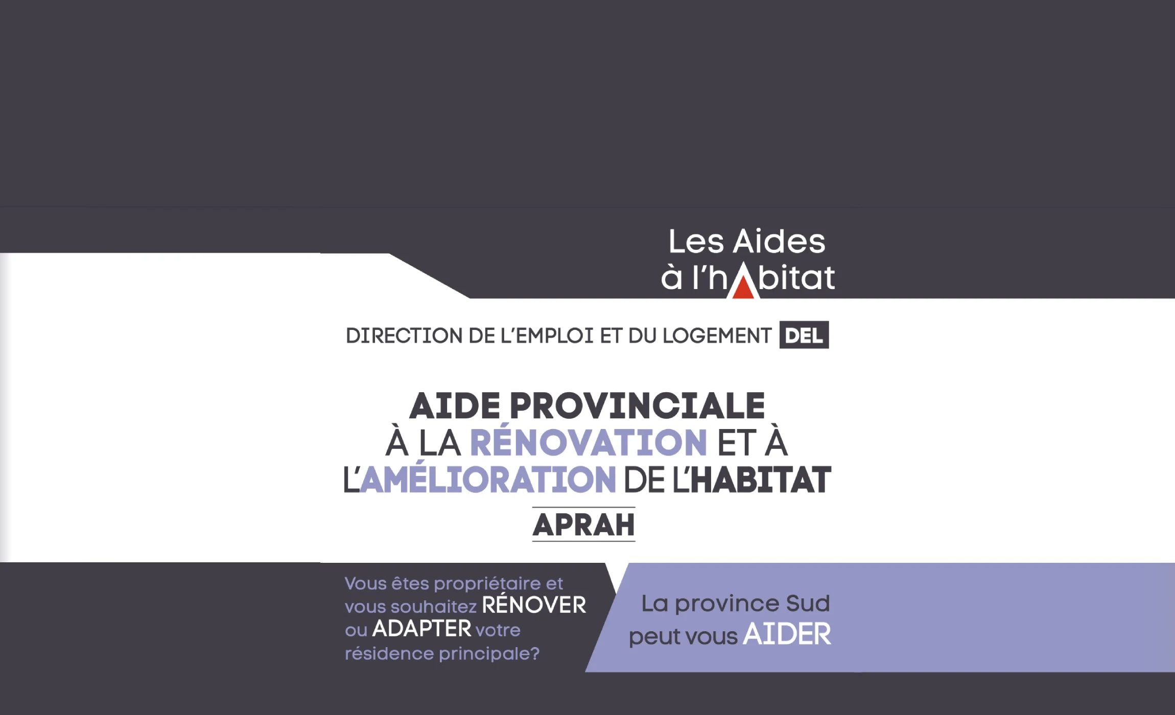 Ce dispositif d’aide à la rénovation ou l’amélioration permet à des ménages propriétaires de leur logement depuis au moins 5 ans , d’un logement bâti depuis au moins 10 ans ou bénéficiant d’un acte coutumier, de bénéficier d’une aide financière sous forme de subvention et/ou d’une avance remboursable (selon leur niveau de revenus) jusqu’à 4 000 000 FC.FP ainsi que d’une prime de 500 000 F.CFP pour l’intégration de 2 investissements verts (chauffe-eau solaire ou pompe à chaleur, système de récupération d’eau de pluie, système de production d’électricité par panneaux photovoltaïques, isolation des toitures par laine de roche ou ouate de cellulose ou équivalent).